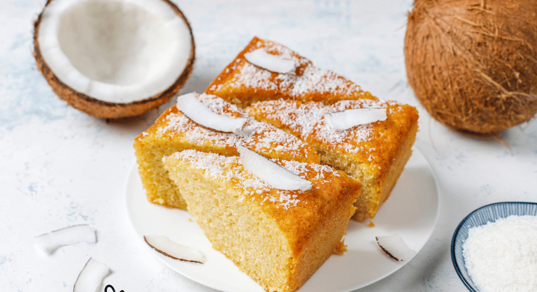 Servez le gâteau à la noix de coco et au lait de coco avec une boisson chaude ou un café pour un dessert parfait.